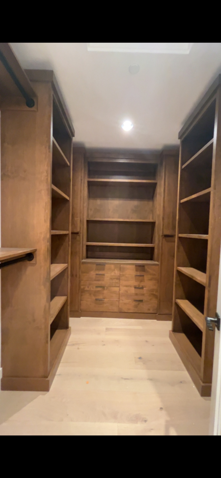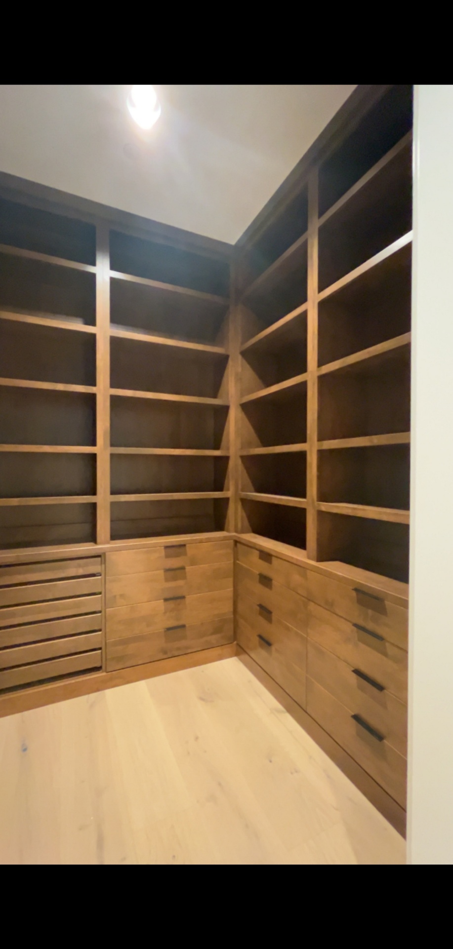 Bespoke cabinetry solutions tailored to your space, including custom hood boxes, pantry cabinetry, coffee nooks, closets, and bathroom cabinetry. Each piece is crafted to maximize functionality and match your design vision.
